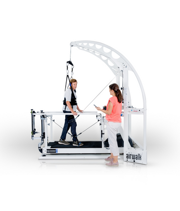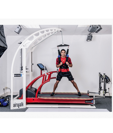 Con el sistema de entrenamiento, diagnóstico y rehabilitación airwalk® ap, puede comenzar con el entrenamiento de la marcha y el entrenamiento funcional muy pronto después de una lesión. El objetivo es hacer que los movimientos del atleta o del paciente vuelvan a un ritmo normal, incluso si las articulaciones aún no se pueden cargar por completo (con gravedad normal).