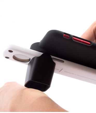 GL permite la captura de imágenes increíblemente detalladas con prácticamente cualquier teléfono inteligente o iPad. Para lograr esto, GL es compatible con los adaptadores para teléfonos inteligentes DermLite MagnetiConnect ™ que crean una conexión magnética con un dispositivo móvil en cualquier posición del lente. Se puede usar un espaciador de encaje incluido para estabilizar la fotografía si es necesario.