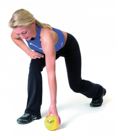 Pelota de peso color azul de 2.5 kilos, forma parte de un sistema progresivo de pesas suaves muy versátil.