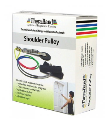 La polea para hombro Shoulder Pulley Thera-Band® está específicamente diseñada para la rehabilitación de hombros en la recuperación y mantenimiento de la amplitud de movimiento. A diferencia de las poleas convencionales, la polea para hombro Thera-Band® cuenta con una cuerda única que está dividida en 6 secciones con 6 intensidades distintas marcadas con colores y marcas en negro que permite, al paciente, obtener información inmediata sobre el progreso de su rango de movimiento.